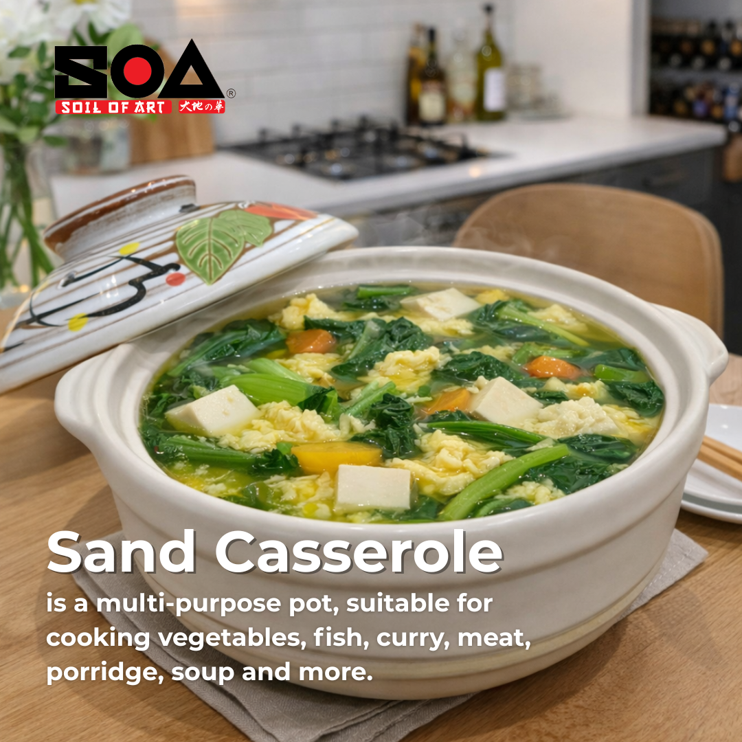 Sand Casserole is a multi-purpose pot, suitable for cooking vegetables, fish, curry, meat, porridge, soup and more.
